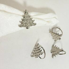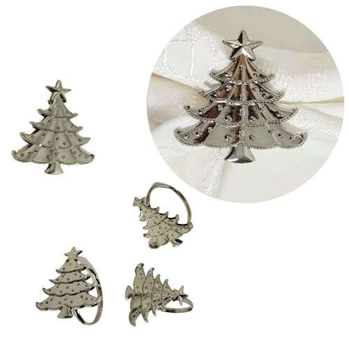 Porta Guardanapo Prata Árvore Natal 3x4cm 4pc Mesa Posta Vem decorar, seja INIGUAL