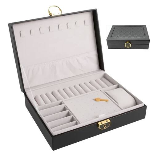 Cada compartimento foi projetado para dar a cada acessório o cuidado que ele merece. Inclui também uma fechadura com chave para trancar o estojo com segurança e manter estranhos e crianças longe de seus objetos de valor.
