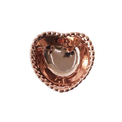 Porta Jóias e petisqueira em formato de coração com detalhes na borda. Ideal para armazenamento de acessórios e pequenas peças como anéis,colares,brincos e pulseiras. Além de servir como uma linda petisqueira para uma composição de mesa posta sofisticada e elegante, tratando-se de uma peça pequena é possível servir apenas pequenas porções de petiscos.