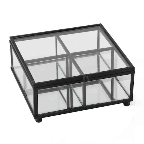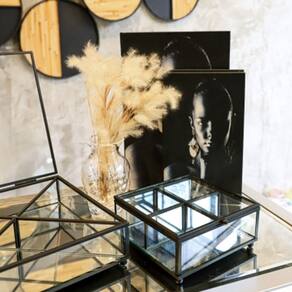 Porta Joias de Vidro Transparente Metal Preto com Espelho