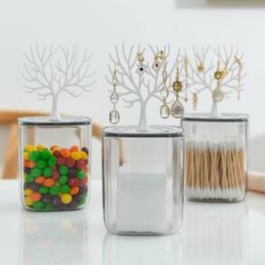 Porta Joias Porte Organizador com Suporte Para Brincos Porta Joias Porte Organizador com Suporte Para Brincos ===================================== Com um design inovador e encantador, ele combina um pote de armazenamento transparente com uma tampa e uma árvore decorativa, perfeita para pendurar brincos, anéis, colares e outros acessórios pequenos. O recipiente inferior é espaçoso e pode ser para guardar qualquer outro item pequeno que você deseja manter sempre à mão. Feito com materiais duráveis e de alta qualidade, ele é ideal para o banheiro, penteadeira, quarto ou até mesmo para decorar sua mesa de trabalho com estilo. A transparência do pote permite visualizar facilmente o conteúdo, enquanto o topo em forma de árvore adiciona um toque de elegância e criatividade à decoração. ===================================== Contém: 01 Porta Joias Especificações: - Material: Plástico - Medida Pote Inferior: 10cm x 09cm - Medida Árvore Porta Joias: 09cm x 09cm - Cor: Branca ou Cinza enviado de forma aleatória conforme disponibilidade em - Peso: 125 gramas ===================================== Devido à diferença entre monitores e iluminação diferentes, pode haver variação na tonalidade apresentada no anúncio. Medidas muito aproximadas. Marca: Não Informado