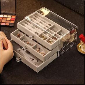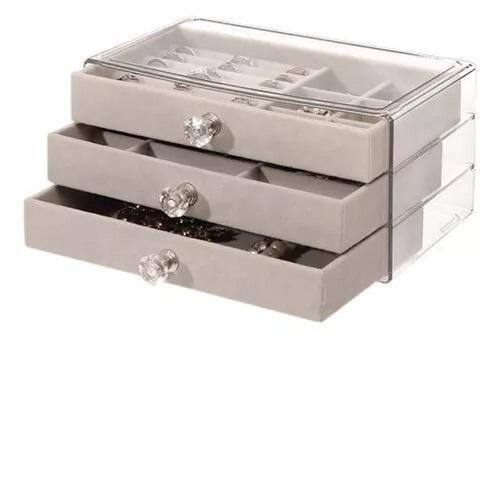 Material do exterior - Caixa Acrílico Material do interior -Veludo Capacidade de jóias - 100 Quantidade de compartimentos - 11 Quantidade de gavetas - 3 Com espelho - Não
