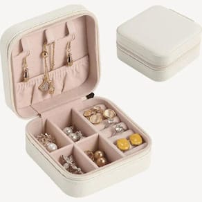 Porta Jóias Viagem Bege Estojo Maquiagem Portátil Delicado O Mini Porta Joias Portátil é a solução ideal para quem busca praticidade e organização ao guardar suas joias. Com um design moderno e elegante, oferece durabilidade e resistência excepcionais. Sua versatilidade é uma das principais vantagens, pois pode ser utilizado tanto em casa, para manter suas joias organizadas no dia a dia, quanto em viagens, para proteger suas peças valiosas. Seu tamanho compacto permite que você o leve facilmente em sua bolsa, mala de viagem ou até mesmo na gaveta do armário. Possui compartimentos específicos para cada tipo de acessórios, proporcionando um armazenamento eficiente e seguro.