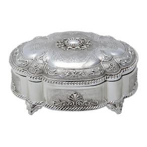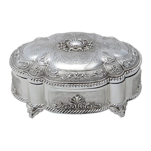 Com dimensões generosas de 20x16x9cm, este porta joias oferece muito espaço para organizar e proteger suas joias. Seu exterior prateado e detalhes meticulosamente trabalhados o tornam uma peça essencial para quem valoriza a beleza e a sofisticação.