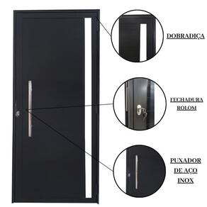 Aplicado em local: interno ou externo Vidro: Liso Ambientes Recomendados: Externo;Interno Acabamento do Puxador: Inox Acompanha Batedor: Não Acompanha Batente: Sim Acompanha Dobradiça: 03 Acompanha Fechadura: Sim Acompanha Guarnição: Não Acompanha Manual de Instalação: Sim Acompanha Puxador: 02 Acompanha Trinco: Não Altura: 210 cm Ambiente Principal: Sala de Estar codigo_ean: 7898683665523 Cor: Preto Cor do Batente: Preto Cor do Produto: Preto Cor Predominante: Preto Dimensão da Máquina da Fechadura: 25.0000 Isolamento Acústico: Não Itens Inclusos: 1 Porta Lado de abertura: Direita Largura: 80 cm Largura do Batente: 4,5 cm Linha ou Coleção: Linha 25 Manual de Montagem e Instalação: https://product-hub-prd.madeiramadeira.com.br/866273/documents/d1d25321-f4a9-4457-ba33-5483747e93b9OesdeinstalaCAoportadegiro.pdf Material da Dobradiça: Alumínio Material do Batente: Alumínio Material do Puxador: Aço Material Principal: Alumínio Necessita Montagem: Não Número de Folhas: 01 Origem do Produto: Nacional Peso: 15 kg Possui Grade: Não Tamanho: 210 x 80 cm Tamanho do Produto: 210cm x 80cm Textura da Porta: Com detalhe vidro Tipo de Dobradiça: Simples Tipo de Parede: Alvenaria Tipo de Puxador: Externo Tipo de Vidro: Liso Vidro incluso: Sim Marca: Esquadrias Bergamo Ean: 7898683665523