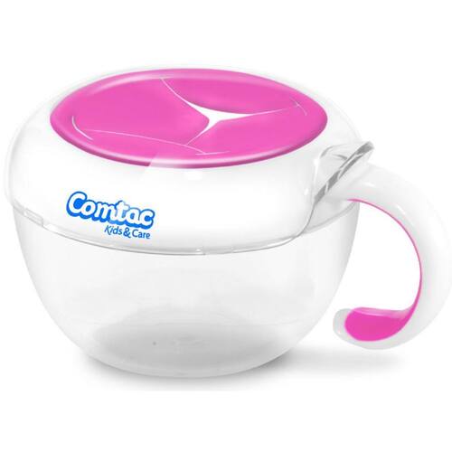 O Porta Lanches da Comtac Kids possui uma tampa de silicone macia e flexível. Foi projetado para facilitar o acesso das crianças ao lanche e para prender os alimentos dentro do copo quando for agitado ou virado de cabeça para baixo.