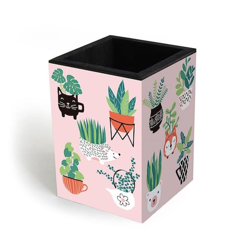 Porta-lápis em MDF revestido e acabamento interno em material aveludado preto. Medidas: 7,0 cm (comprimento) x 7,0 cm (largura) x 10 cm (altura).