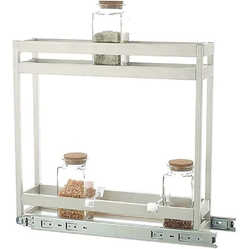 Porta Latas/Óleos de Base Produto confeccionado em alumínio anodizado, acompanha trilhos telescópicos zincados, que vão montados na peça para fixação na base do nicho. Seus fundos, para o apoio das latas e condimentos, agora são feitos por bandejas em inox 430, até mesmo no modelo anodizado fosco. Medidas totais: 150x450x450mm¿ Código: 9351 - anodizado fosco Aramados Jomer Garantia 12 Meses.