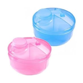 - 02 Porta Leite em Pó.- Três divisórias internas e tampa com abertura especial.- Elaborado Para facilitar a vida da mãe, com três divisórias internas e tampa com abertura especial.- Porta leite em pó Livre de bisfenol A .- Composição :Tampa e recipiente em Polipropileno.- Disponíveis nas cores : Azul e rosa .- Validade: Indeterminada- Peso: 57 Gramas.Selo de inspeção INMETRO.Ficha técnica- Fonte do produto: Brasil- Unidades por embalagem: 2- Cor: Azul Marca: Mmta