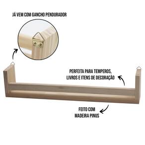 Porta livros grande prateleira temperos condimentos pinus Prateleira pinus decorativa casa cozinha Essa é para você que quer um tipo de prateleira totalmente customizável, grande e estilosa em casa ela é perfeita para todo tipo de decoração, como bonecos, pequenos vasos, livros ou até mesmo para decorar sua cozinha colocando temperos. Material: madeira pinus natural Tamanho: 57cm comprimento 11cm altura 10cm profundidade 18mm espessura Acompanha 2 argolas ja instaladas na prateleira para facilitar fixação - entregam para todo país resp: sim, fazemos entrega em até 24hs e para todo o país - tem a Quem somos Marca: Não Informado