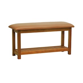 Banco Sapateira Viena Madeira Maciça Assento Estofado Sintético Natural/Caramelo