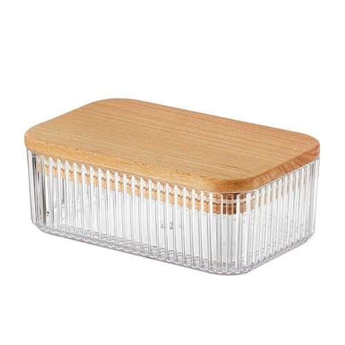 - 01 Porta Mantimento Retangular com Tampa de Madeira 500ml