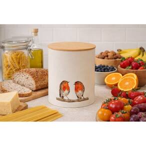 Porta Mantimentos 16x20cm Com Tampa Em Bambu Pássaros -