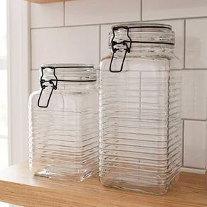 Porta Mantimentos Potes Hermético Vidro Clipe Metal Kit 2pçs -