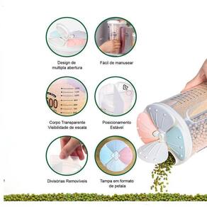 Porta Mantimentos Triplo Pote Alimentos 3 Em 1 Divisorias Dispenser Lavanderia Sabao Em Pó Medidor Sucrilhos Graos Multi Pote com Divisórias para Armazenamento de Alimentos ml Praticidade e organização na sua cozinha: Guarde arroz, feijão, macarrão, café, açúcar e muito mais em um único pote.