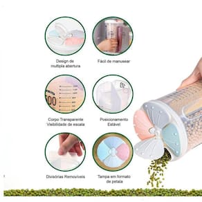 Praticidade e organização na sua cozinha: Guarde arroz, feijão, macarrão, café, açúcar e muito mais em um único pote.