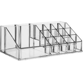 Mantenha sua beleza organizada e ao alcance das mãos com este organizador de acrílico. Este organizador é ideal para quem busca um espaço prático e elegante para armazenar maquiagem, esmaltes, joias, perfumes, linhas ou objetos. Com 12 divisórias, o organizador oferece um espaço amplo e eficiente para categorizar seus produtos de beleza. As divisórias são ajustadas para acomodar diferentes tamanhos de itens, desde batons e sombras até frascos de perfume e bijuterias. Suas dimensões permitem que ele se encaixe em prateleiras, penteadeiras ou mesas, aproveitando ao máximo o espaço disponível. A transparência do acrílico permite que você veja rapidamente o que há dentro, facilitando a escolha dos produtos sem precisar revisar tudo.