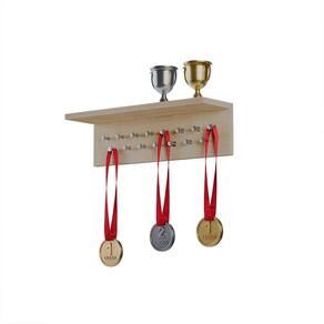 Porta Medalhas Carvalho 45cm com Suporte para Troféus - Bege