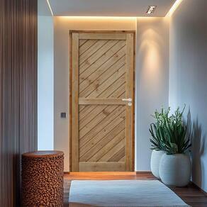 Porta Mexicana Diagonal Pinus 82 x 2.10 Batente Ecológico 11CM Fechadura Externa Lado Esquerdo - Rodam