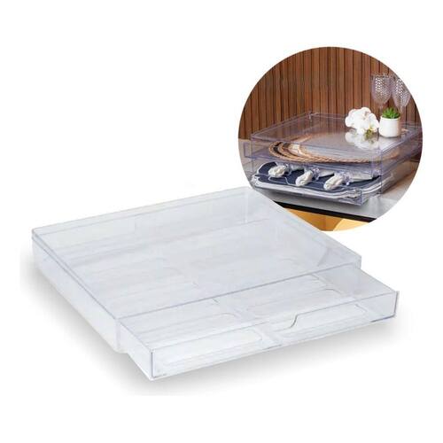 Porta Organizador De Jogo Americano Sousplat Retangular Cor Branco O Organizador Empilhável para Jogo Americano/Sousplat é a solução perfeita para uma mesa posta impecável e bem organizada. Com um design transparente e moderno, este organizador se adapta facilmente a qualquer espaço, trazendo praticidade e elegância para o seu ambiente.