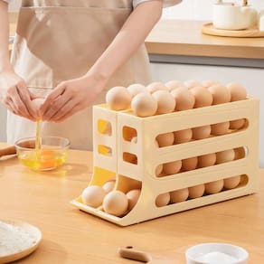 Porta Ovos Dispenser Organizador de geladeira 4 andares Cor: Branco Imagine ter ovos sempre frescos e organizados com o Porta Ovos Organizador Bandeja Geladeira Dispense 4 Andares Este dispense é a solução perfeita para quem busca organização na geladeira e proteção contra ovos quebrados. BENEFÍCIOS/CARACTERÍSTICAS: - Organização Eficiente: Com o design de 4 camadas e 3 fileiras, o dispense acomoda aproximadamente 30 ovos, garantindo um bem-organizado e fácil de acessar. - Economia de Espaço: Seu design compacto e vertical ocupa pouco espaço na geladeira, liberando mais área para outros alimentos. - Sistema de Gravidade: A estrutura inclinada e o movimento suave de rolagem permitem que os ovos sejam liberados um a um, garantindo que você utilize os ovos mais antigos primeiro. - Durabilidade e Estabilidade: Feito com materiais de alta qualidade, o organizador é estável e evita derramamentos acidentais, protegendo seus ovos de quebras indesejadas. - Design Moderno: Além de funcional, o dispense tem um design moderno que embeleza a sua geladeira, tornando-se um complemento estético para a sua cozinha. - Fácil Manuseio: Leve e portátil, é fácil de carregar e ajustar conforme suas necessidades, tornando o processo de armazenar ovos mais prático e eficiente. FICHA TÉCNICA: - Marca: INMA - Modelo: Porta Ovos Organizador Bandeja Geladeira Dispense 4 Andares - Material: Plástico de alta qualidade - Categoria: Organizadores de Cozinha - Capacidade: Aproximadamente 30 ovos - Características Adicionais: Estrutura de gravidade, design inclinado, movimento suave de rolagem CONTEÚDO: - 1 x Porta Ovos Organizador Bandeja Geladeira Dispense 4 Andares Vale lembrar que temos como compromisso oferecer nosso melhor para que possamos criar laços de confiança e credibilidade junto aos nossos clientes Em caso de dúvidas encaminhe suas questões que nossa equipe estará disponível para atendê-los da melhor forma, seguindo as diretrizes do nosso padrão de atendimento Nossa preocupação é atender a sua necessidade Equipe D&G
