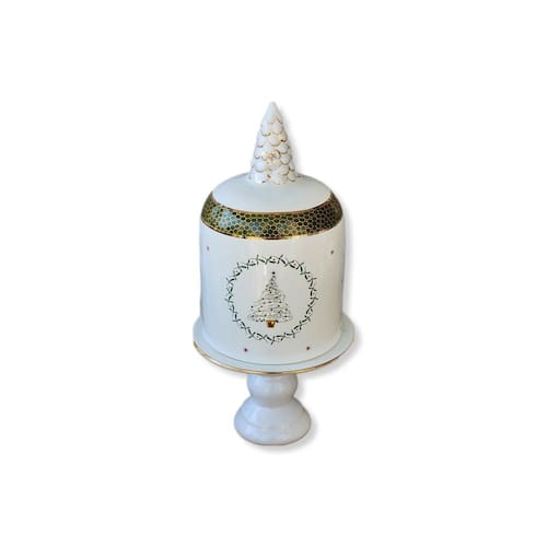 Estes são ideais para quem gosta de uma mesa posta mais sofisticada, pois possuem detalhes de filetos dourados, trazendo sofisticação e elegância. Material: cerâmca Tamanho: g Mede 33cm de altura. Base do porta panetone tem 18cm de largura. Tampa do panetone tem 15,5cm de largura.