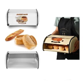 Porta Pao Decorado Tampa Retratil Cesto Bolo Grande Capacidade Vintage Hotel Cafe Vintage PORTA PÃES DE AÇO INOX Traga mais elegância e sofisticação para a sua cozinha com este porta pães! Feito em aço inox, garante não só alta resistência do produto, mas também que o pão fique quentinho após sair do forno. O design do fundo é antiderrapante e faz com que esta caixa de armazenamento de pão seja colocada na mesa da cozinha de forma estável e .