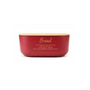 Porta Pão Em Metal Com Tampa De Bambu 5,8 Litros Vermelho Carmim -
