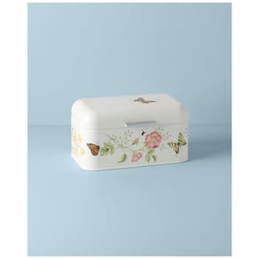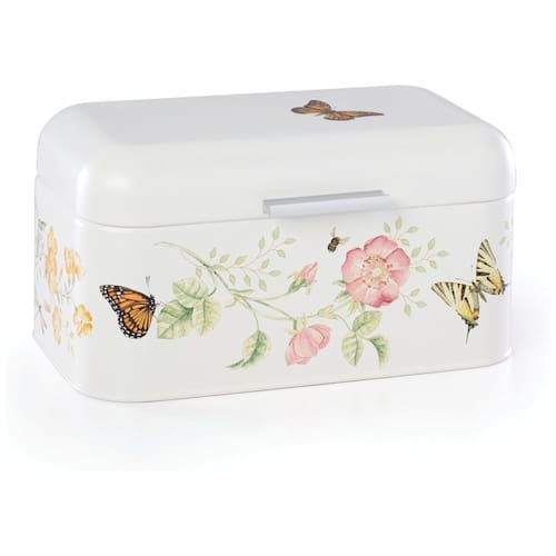 Mantenha seu pão fresco por mais tempo com esta caixa hermética para pão da coleção Butterfly Meadow, que apresenta um belo motivo de borboleta e floral. Feita de metal durável, esta caixa é o complemento perfeito para sua cozinha. Lembre se de lavá la apenas à mão e não utilizá la no micro ondas. Produto importado.