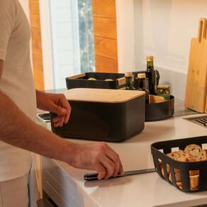 Com design moderno e minimalista, combina a base em polipropileno bege resistente com a tampa em bambu natural, que além de elegante, presenva a textura e o sabor do pão.