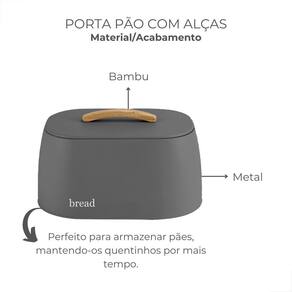 O porta pão grande lata pães metalla bread com tampa cinza ou é perfeito para armazenar e servir pães de forma adequada. Com um mix de materiais que traz funcionalidade e personalidade ao ambiente, esse porta pão possui alça de bambu, que além de ser sustentável, proporciona sofisticação à decoração. Disponível nas cores bege e cinza, esse porta pão possui uma alça superior que facilita a abertura da tampa e um anel de silicone que garante a vedação hermética do conteúdo, mantendo os alimentos frescos por mais tempo. Com medidas de 23,5cm de profundidade, 33,5cm de largura e 18,5cm de altura, esse porta pão é espaçoso o suficiente para armazenar diferentes tipos e formatos de pães. Feito de metal, é resistente e durável. Adquira o porta pão grande lata pães metalla bread com tampa cinza ou e tenha uma rotina mais prática e organizada em sua casa. Com design atemporal, esse porta pão se adequa a todos os estilos de decoração, trazendo mais conforto e conexão com o lar.