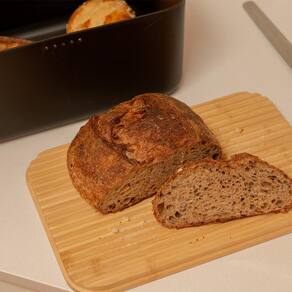 Detalhes do produtoTampa de bambu que também serve como tábua de corte com ranhuras para migalhasFuros no recipiente que mantém o pão fresco por mais tempoCapacidade de 9,5L, perfeito para diferentes tipos e tamanhos de pãesDesign minimalista e modernoInformações TécnicasAltura:18 cmLargura:33,5 cmComprimento:33,5 cmPeso:0.975 kgMaterial:PP+BAMBUInstruções de UsoNão levar ao freezerNão levar ao micro-ondasNão levar à lava-louçasO Porta Pão da Linha Lume foi desenvolvido para armazenar e servir diferentes tipos e tamanhos de pães com muito mais praticidade e estilo. Conta com furos no recipiente, que ajudam o pão a se manter fresco por mais tempo. Sua tampa em bambu é multifuncional, servindo também como tábua de corte, com ranhuras que coletam as migalhas. Com capacidade de 9,5L, traz um design minimalista e sofisticado que são um convite a celebrar a pausa e aproveitar com prazer os momentos à mesa.CuidadosO Pote do Porta Pão pode ser lavado na máquina de lavar louça, já para a tampa de bambu, utilize uma esponja macia e sabão neutro para lavar o produto. Enxágue com água abundante, evitando deixá-lo submerso na água. Após a lavagem, seque imediatamente para evitar o aparecimento de fungos e bactérias. Guarde o produto em local seco e arejado. Caso o produto apresente mofo, limpe-o com um pano umedecido em vinagre branco.Conteúdo da embalagem1 Porta pão Ou com tampa de bambu LinhaLume