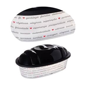 Transforme a organização da sua cozinha com um toque de estilo e positividade! Este elegante porta pão com tampa preta traz um design moderno e cheio de personalidade, com uma estampa que valoriza palavras inspiradoras como "amor", "esperança", "gratidão", "fé" e "alegrias".