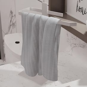 Especificações Técnicas Suporte Toalheiro Cor: Branco Dimensão Base: 13x13cm Altura: 30cm Largura da Hastes do Toalheiro: 25cm