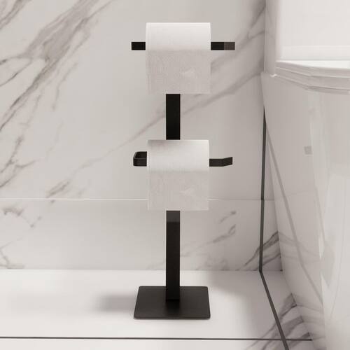 Porta Papel Higiênico Chão Papeleiro Banheiro Lavabo Duplo Cor: Preto Porta Papel Higiênico de Chão Preto Duplo