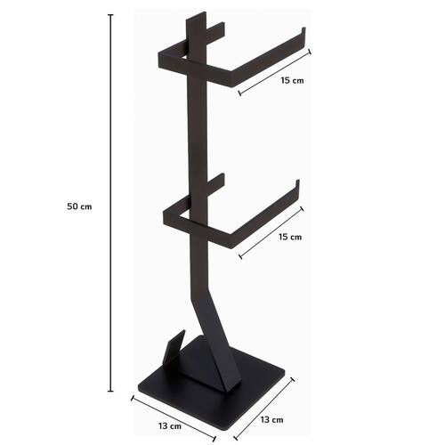 Especificações Técnicas Suporte Cor: Preto Dimensão Base: 13x13cm Altura: 50cm Largura da Hastes do Papel Higiênico: 15cm