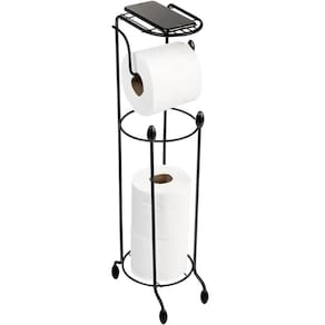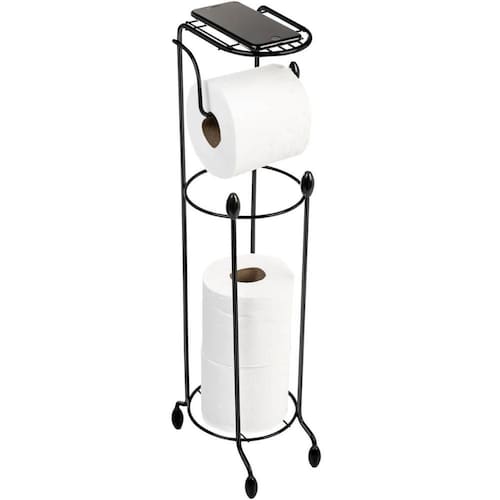 Porta Papel Higiênico com Suporte para Celular Papeleira para Banheiro de Chão Preta Utimil.