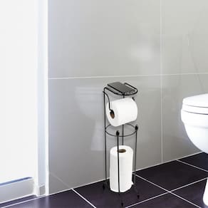 O suporte para papel higiênico da Utimil é uma solução inovadora para levar mais praticidade ao seu dia a dia. Possui espaço para um rolo em uso e capacidade para armazenar até dois rolos extras. Além disso, essa papeleira para banheiro conta com um compartimento aramado na parte superior, que serve para acomodar seu celular. Este suporte para celular também pode ser multifuncional, seja para armazenar lenços umedecidos, difusor de ambiente, ou até mesmo um item de decoração. Você poderá usar sua criatividade ao decorar com o porta papel higiênico preto da Utimil.