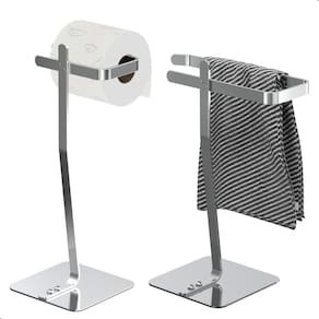 Nunca foi tão fácil manter seu banheiro organizado com estilo. Porta papel higiênico de chão inox e toalha lavabo oslo.S. Desfrute da conveniência e eleve a estética do seu banheiro. Organização e elegância se encontram nestes produtos