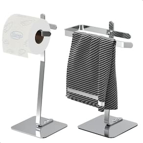 Nunca foi tão fácil manter seu banheiro organizado com estilo. Porta papel higiênico de chão inox e toalha lavabo oslo.S. Desfrute da conveniência e eleve a estética do seu banheiro. Organização e elegância se encontram nestes produtos