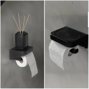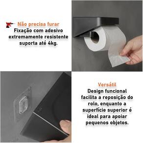 Porta Papel Higiênico Suporte de Parede Eleve Preto com Adesivo