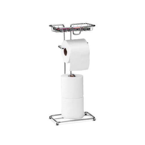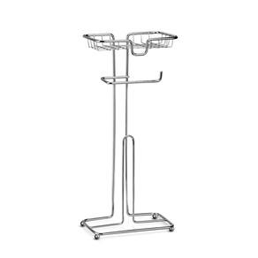 Porta Papel Higiênico de Chão Arthi Cromado - Com Suporte para Celular O Porta Papel Higiênico de Chão da Arthi é um acessório moderno que une organização e conveniência no banheiro. Além de armazenar o rolo em uso, ele conta com uma prateleira superior integrada para apoiar o celular ou pequenos objetos. Características Físicas e Funcionais: Funcionalidade 2 em 1: Oferece o suporte para o rolo de papel higiênico em uso e uma base plana (bandeja) para celular ou itens pessoais. Design de Chão: Dispensa furos e instalação, permitindo fácil posicionamento e portabilidade. Otimização de Espaço: Solução vertical que mantém o papel acessível e o celular seguro. Material Premium: Fabricado em Aço Cromado, garantindo resistência à umidade, durabilidade e acabamento estético. Marca: Arthi. Especificações Técnicas: Dimensões: Comprimento 20,5 X Largura 13 X Altura 46,3 cm Material: Aço Cromado