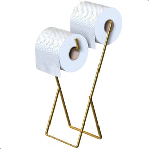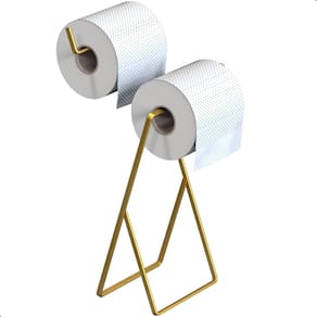 Porta Papel Higiênico Suporte de Chão Duplo Dourado Seul com design contínuo em aço. Desenvolvida para acomodar dois rolos de papel higiênico de forma organizada e acessível. Produzido em aço resistente e finalizado com pintura eletrostática epóxi na cor dourada, garantindo durabilidade superior e acabamento uniforme. Ideal para quem quer organização sem abrir mão de um visual elegante e atemporal.