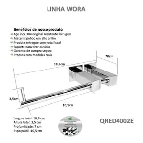 Porta Papel Higiênico Suporte Papeleira Para Banheiro Inox 304 - QRED4002E ( Lado Esquerdo) Funcionalidade com orientação inteligente. O Porta Papel Higiênico QRED4002E foi projetado especialmente para quem busca uma solução prática, durável e elegante com instalação no lado esquerdo do vaso sanitário. Com design clean e sem tampa, ele garante fácil acesso ao papel higiênico, promovendo mais conforto e agilidade no uso cotidiano. Produzido em aço inoxidável 304, o QRED4002E oferece resistência excepcional à umidade e à corrosão, ideal para ambientes como banheiros e lavabos. Seu acabamento polido em alto brilho traz um toque sofisticado ao espaço, combinando com decorações modernas, minimalistas ou clássicas. Compacto, discreto e eficiente, é perfeito para composições que exigem orientação lateral específica sem comprometer o estilo e a harmonia do ambiente.