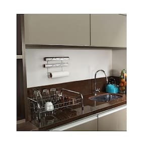 Porta Papel Toalha Alumínio Filme Este prático Porta Papel Toalha Alumínio Filme é fabricado em aço cromado, irá aprimorar o arranjo da sua cozinha, pois organiza 3 rolos na mesma peça, podendo ser eles rolos de papel toalha, papel alumínio e também plástico filme PVC. O produto é leve e com um design moderno, deixando sua cozinha mais funcional e organizada. A sua cozinha merece acessórios e produtos práticos para facilitar o dia a dia.