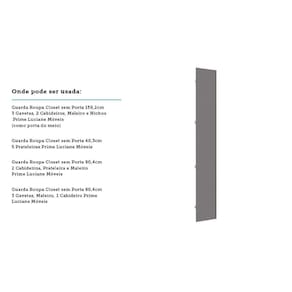 Onde pode ser utilizado: - Guarda Roupa Closet sem Porta 159,2cm 3 Gavetas, 2 Cabideiros, Maleiro e Nichos Prime Luciane Móveis - Guarda Roupa Closet sem Porta 40,3cm 5 Prateleiras Prime Luciane Móveis - Guarda Roupa Closet sem Porta 80,4cm 2 Cabideiros, Prateleira e Maleiro Prime Luciane Móveis - Guarda Roupa Closet sem Porta 80,4cm 3 Gavetas, Maleiro, 1 Cabideiro Prime Luciane Móveis