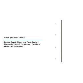 Onde pode ser utilizado: - Guarda Roupa Closet sem Porta Canto Diagonal 83,8cm 5 Prateleiras 1 Cabideiro Prime Luciane Móveis