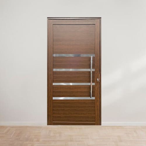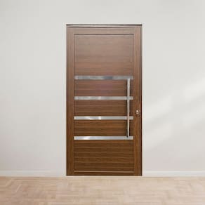 Porta Pivotante com Puxador e Friso Linha Roma 210x100 Amadeirada Lado Esquerdo Marrom