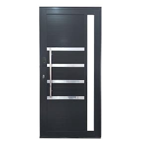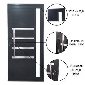 Porta Pivotante de Alumínio Preto Com Puxador, Friso e Visor com Fechadura Digital Linha 30 - Bergame