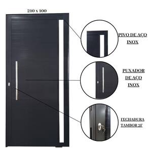 Aplicado em local: interno ou externo Vidro: Liso Ambientes Recomendados: Externo;Interno Acabamento do Puxador: Inox Acompanha Batedor: Não Acompanha Batente: Sim Acompanha Fechadura: Sim Acompanha Guarnição: Não Acompanha Manual de Instalação: Sim Acompanha Puxador: 02 Acompanha Trinco: Não Altura: 210 cm codigo_ean: 7898683667084 Cor: Preto Cor do Batente: Preto Cor do Produto: Preto Cor Predominante: Preto Dimensão da Máquina da Fechadura: 25.0000 Escala de Brilho: Semi-Brilho Isolamento Acústico: Não Itens Inclusos: 1 Porta Lado de abertura: Direita Largura: 100 cm Largura do Batente: 4,5 cm Linha ou Coleção: Linha 25 Manual de Montagem e Instalação: https://product-hub-prd.madeiramadeira.com.br/863658/documents/4f7bdb12-7264-4126-8ca4-1edbb35984aduCOesdeinstalaCAopivotante.pdf Material do Batente: Alumínio Material do Puxador: Aço Material Principal: Alumínio Necessita Montagem: Não Número de Folhas: 01 Origem do Produto: Nacional Peso: 16 kg Possui Grade: Não Tamanho: 210 x 100 cm Textura da Porta: Com detalhe vidro Tipo de Parede: Alvenaria Tipo de Puxador: Externo Vidro incluso: Não Marca: Esquadrias Bergamo Ean: 7898683667084